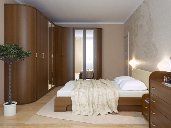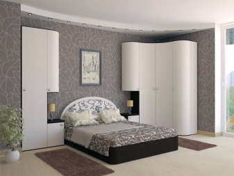 بالإضافة إلى ذلك ، تكتسب الشعبية أثاث نصف قطر. هذه أثاثات تم فيها تسوية جميع الزوايا الحادة. يبدو هذا الأثاث غير عادي ويعطي أصالة لتصميم غرفة النوم..