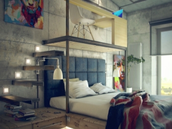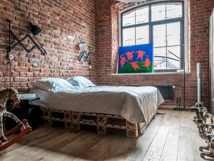 - في غرفة مزينة بأسلوب العلية, يمكنك حتى ترتيب سرير من المنصات.