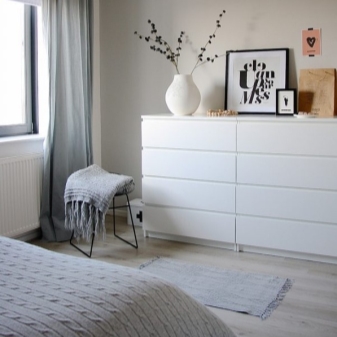 سمة أخرى من سمات الأثاث التي يتم تثبيتها غالبًا في غرفة النوم هي خزانة ذات أدراج.. سيسمح لك هذا النوع من الأثاث بتخزين أغطية السرير فيه ، بالإضافة إلى قطع صغيرة من الملابس ، على سبيل المثال ، الجوارب ، والملابس الداخلية..