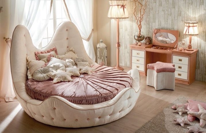 - سرير دائري في غرفة النوم – غير عادي وأنيق. سيبدو جيدًا بشكل خاص في غرفة بها نافذة كبيرة مستديرة..