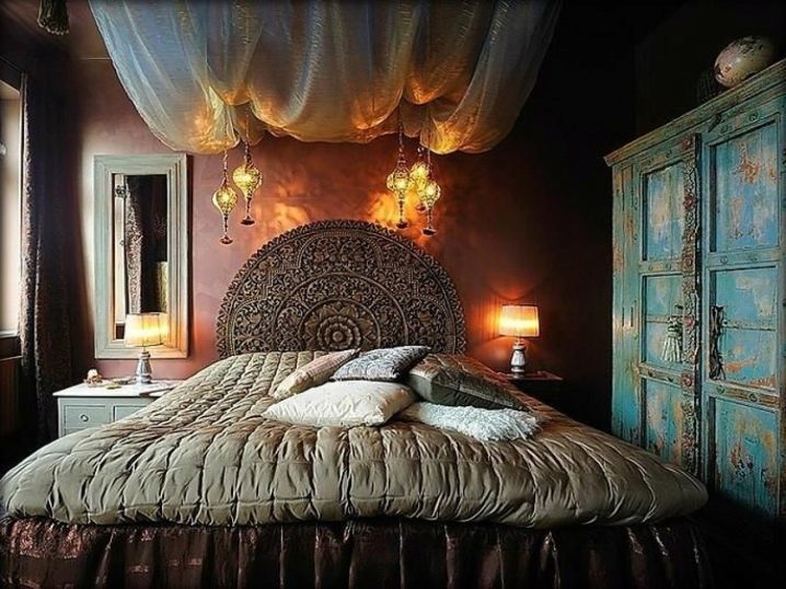 - لغرفة النوم بأسلوب بوهيمي, بالإضافة إلى الأثاث غير المعتاد ، يجب عليك استخدام الكثير من المنسوجات على شكل مظلة وأغطية سرير ووسائد.