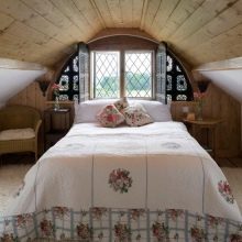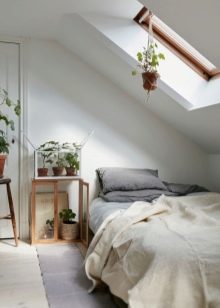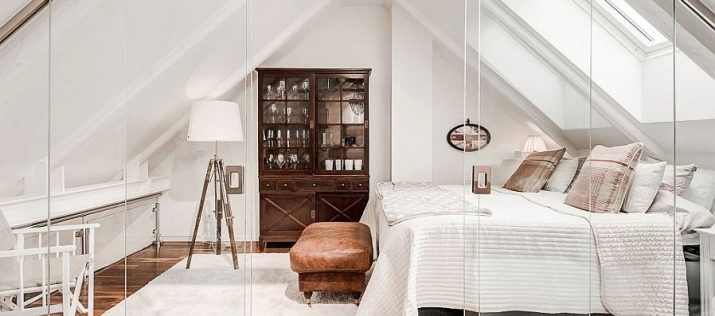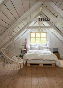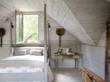 غالبًا ما تكون غرفة صغيرة لا يمكن اعتبارها كاملة. لها نوافذ ضيقة ذات شكل غير منتظم وأحجام مختلفة ويمكن وضعها في أكثر الأماكن غير المتوقعة. يحد الأسقف سقف الجملون مع قوائم خشبية. على الرغم من قلة الضوء ، فإن الغرفة تعطي انطباعًا عن مكان لطيف ، ولهذا السبب فإن غرفة النوم في العلية هي بالضبط ما يناسب هذا الجزء من المنزل..