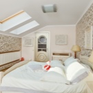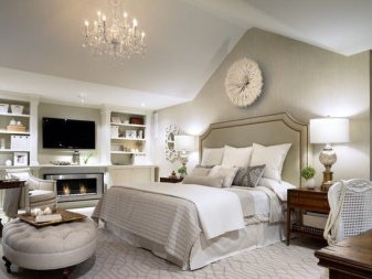 غرفة النوم في العلية كلاسيكية أيضًا. للاستخدام في المناطق الداخلية من الكلاسيكيات ، تم تشطيب الجدران بدقة بجص ناعم. تعتبر لوحة الحائط العادية بألوان الباستيل سمة مميزة للطراز الكلاسيكي. يمكن أن يكون أحد أشكال زخرفة الجدران عبارة عن ورق حائط بنمط دقيق ، مما سيضيف أيضًا جمالًا صارمًا إلى غرفة العلية. يتم اختيار النمط الكلاسيكي التقليدي من قبل أولئك الذين لا يحبون الديكور المفرط والأصالة..