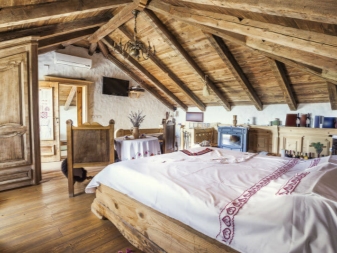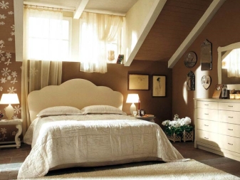 مجموعة متنوعة من الأساليب تجعل من الممكن إنشاء تحفة فنية في غرفة النوم العلية ، بدءًا من التصميم العام للمنزل.
