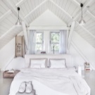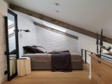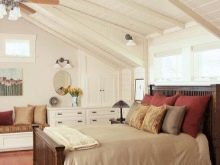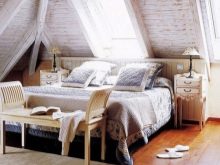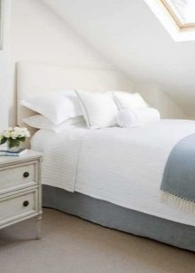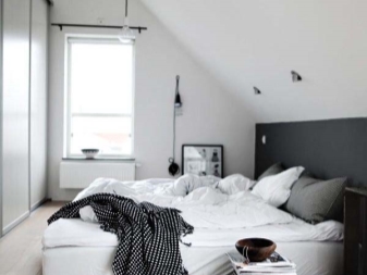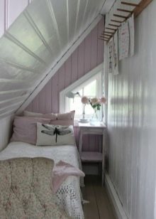 يمكن أن تكون العلية ضيقة للغاية. إذا كانت هناك مساحة ضيقة في غرفة النوم تقع في الطابق العلوي ، يتم وضع السرير على طول الجدار ، وهو أطول.