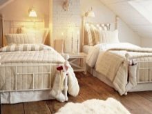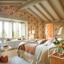 هذا النمط كما لو تم إنشاؤه لغرفة نوم العلية. يخلق التصميم البسيط المحسوب إحساسًا بالصفاء. السمة المميزة للأسلوب هي استخدام الخشب في الأثاث والأرضيات. غالبًا ما تبدو المفروشات قديمة ، ويتم تطبيق تقنية decoupage عليها. يجب أن يخلق التشطيب جوًا قديمًا. يبدو هذا التصميم مفيدًا في هياكل العلية المعقدة. بروفانس ، بالطبع ، خلفيات نباتية وثريات زجاجية وأثاث أبيض منحوت ومنسوجات. هذه هي فرنسا المقاطعة بأكملها.