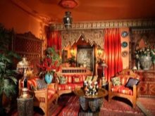 بالنسبة لعشاق الشرق ، فإن استخدام اللون الذهبي سيساعد في تزيين غرفة النوم. ستساعد هذه النغمات أو الملحقات الذهبية في خلق جو من الرخاء والرفاهية ، ويتم تنفيذ نفس المهمة بواسطة سرير مغطى بأربعة أعمدة..