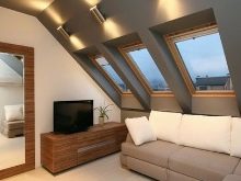 - نظرًا لانحدار نوافذ السقف ، فإن الضوء المنبعث منها يضيء الأرضية دائمًا.. في هذه الحالة ، من المهم تزيين النافذة بشكل صحيح. يجب إيقاف اختيار الستائر على الستائر المصنوعة من مادة متدفقة بألوان فاتحة. يجب أن يكون تصميم النوافذ بحيث تفتح بالكامل وتسمح بدخول أكبر قدر ممكن من الضوء..