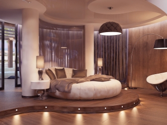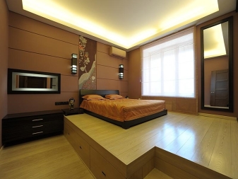 طابقين هو إنشاء منصة على السطح. القرار له ما يبرره ، من وجهة نظر التصميم ، في غرفة النوم ، يمكن أن تكون المنصة مفيدة لتركيب سرير. يتم اختيار المستوى الثاني ليس فقط لأسباب التصميم ، ولكن أيضًا من أجل الدفء ؛ يمكن وضع داخل المنصة بمواد عازلة للحرارة. أي أرضيات مناسبة ، ولكن بدون مهارات البناء ، من المستحيل صنعها ، يتم تنفيذ تخيلات البناء هذه بمساعدة العمال المؤهلين والمصمم.