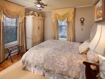 عندما يتعلق الأمر بتزيين النوافذ في غرفة صغيرة ، فإن هذا النوع من الستائر يجعل الغرفة أطول بصريًا. أيضًا ، في غرفة النوم الصغيرة ، من الضروري التخلي عن الستائر المجمعة والمغطاة بكثافة. تبدو ضخمة وستؤثر سلبًا على جو الراحة..