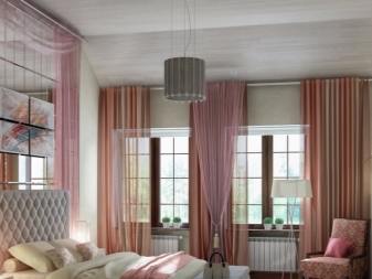 - ستائر مزدوجة. هناك حاجة إلى مادة كثيفة بألوان داكنة لحجب مسار الضوء الساطع ، وسيضيف التول الفاتح الحنان والرومانسية.