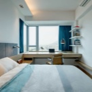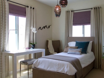 عندما يتعلق الأمر بتزيين النوافذ في غرفة صغيرة ، فإن هذا النوع من الستائر يجعل الغرفة أطول بصريًا. أيضًا ، في غرفة النوم الصغيرة ، من الضروري التخلي عن الستائر المجمعة والمغطاة بكثافة. تبدو ضخمة وستؤثر سلبًا على جو الراحة..