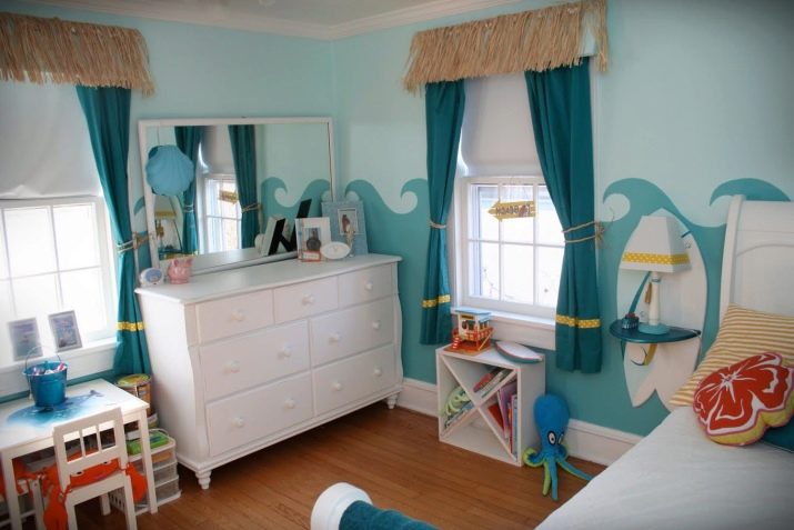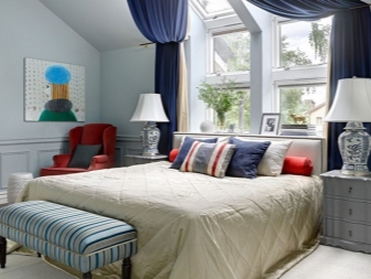 - عندما يتعلق الأمر بزخرفة النوافذ في غرفة مدمجة, يجب أن تكون مادة الستائر بظلال خفيفة. من المستحسن أن ترسم المنحدرات بنفس اللون..