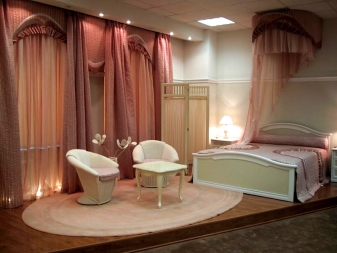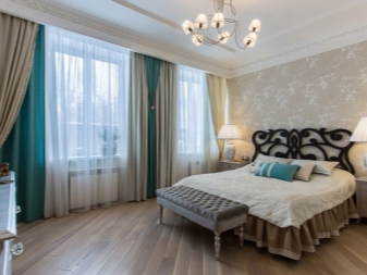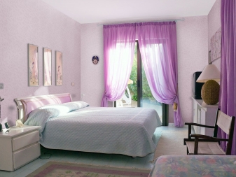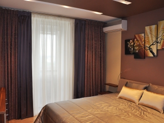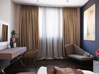 - ستائر مزدوجة. هناك حاجة إلى مادة كثيفة بألوان داكنة لحجب مسار الضوء الساطع ، وسيضيف التول الفاتح الحنان والرومانسية.