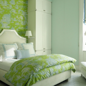إذا قررت الجمع بين ورق الحائط في غرفة النوم ، فيمكنك اختيار عدة أنواع من الأسطح المزخرفة بأنماط مختلفة. ليس من الضروري على الإطلاق أن تُلصق باللون – يمكنك دائمًا الحصول على الظل المطلوب.