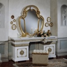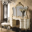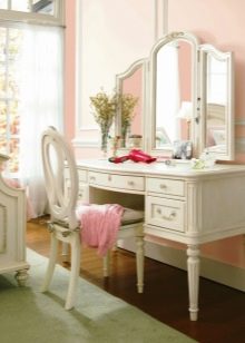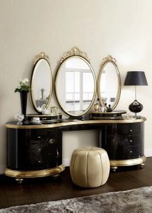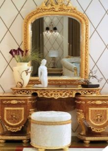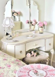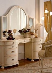 عند اختيار منضدة الزينة لغرفة النوم في هذه التصميمات ، انتبه للأشكال المنحنية. تجدر الإشارة إلى أنه من حيث الصفات المميزة ، فإن هذه الاتجاهات تشبه إلى حد بعيد الباروك..
