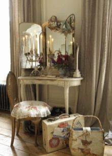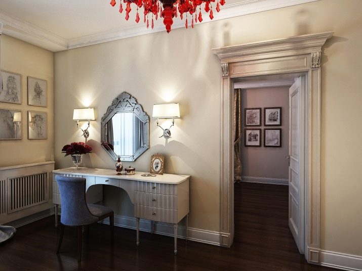 السمة الرئيسية لطاولة الزينة هي الجمع بين الجمال والوظيفة.. تتميز هذه المنتجات دائمًا بتصميم مثير للاهتمام وأنيق ، مما يجعل من الممكن استكمال التصميم الداخلي لغرفة النوم بشكل مفيد. بالإضافة إلى ذلك ، توجد مرآة في الجزء العلوي من زجاج الرصيف. تم تجهيز القاعدة التي يتم تثبيت هذا العنصر عليها بأدراج إضافية لتخزين الملحقات الصغيرة.