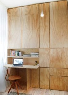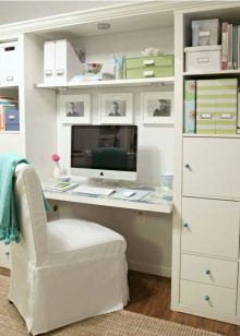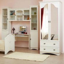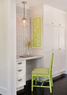 خيار آخر هو نموذج مع مكتب كمبيوتر. من الأفضل وضعه بالقرب من النافذة حتى يسقط ضوء النهار الطبيعي على الطاولة. لذلك أثناء العمل على الكمبيوتر ، ستشعر بالراحة. هذا الخيار هو الأكثر ملاءمة للمراهق ، لأنه في مكتب الكمبيوتر سيكون من الممكن أيضًا أداء واجبات منزلية..