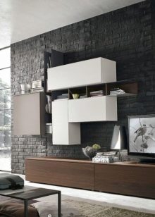 أحد أكثر خيارات الجدار ملاءمة هو جدار زاوية أنيق. مزايا هذا الأثاث واضحة – ذلك يشغل مساحة أقل بكثير ويتم وضعها في مكان لا يتم فيه عادةً تركيب أثاث آخر. يتيح لك ذلك استخدام كل مساحة غرفتك تمامًا بأكثر الطرق عقلانية..