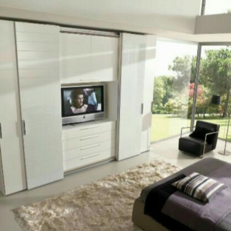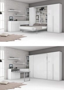 عادة ما يتم اختيار هذا النوع من الأثاث من قبل أولئك الذين يعيشون في شقق صغيرة ، حيث تلعب غرفة واحدة على الفور دور غرفة النوم وغرفة المعيشة. هذا النهج يجعل المبنى متعدد الوظائف ، عليك تخزين كل ممتلكاتك فيه تقريبًا. في هذه الحالة ، يكون الجدار المنزلق جيدًا جدًا..