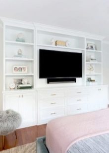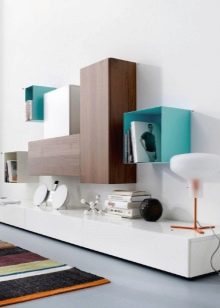 أيضا في الجدران هناك جميع أنواع الرفوف المفتوحة. يمكنك وضع العناصر الزخرفية والأشياء المهمة عليها. لذلك ، على أحد الرفوف ، يمكن أن يحل محل التلفزيون أو مجموعة من الكتب أو الألعاب. يعد هذا توفيرًا كبيرًا للمساحة ، لأنك لست مضطرًا لشراء وتركيب طاولات وأرفف لجميع الأشياء الضرورية..