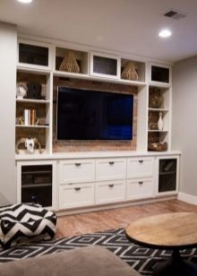 بالمناسبة ، إذا اشتريت مثل هذا الجدار تمامًا ، حيث سيتم تثبيت التلفزيون لاحقًا ، فتأكد من أنه جيد التهوية. إذا لم تكن هناك مثل هذه الثقوب ، فسيتعين عليك صنعها بنفسك – وإلا فسوف ترتفع درجة حرارة أجهزتك باستمرار وتتعطل في النهاية. يجب أن تكون أيضًا قادرًا على توصيل التلفزيون بمأخذ..
