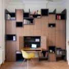 إذا كنت تبحث عن جدار لغرفة نوم مراهق ، فيمكنك أيضًا الانتباه إلى تلك النماذج التي تكمل طاولة الكتابة. هذا مريح للغاية ، لأنك بهذه الطريقة توفر المساحة وتسمح لطفلك بالعمل في بيئة مريحة مع إمكانية الوصول المستمر إلى أرفف الكتب..