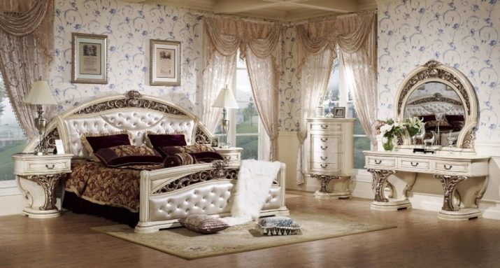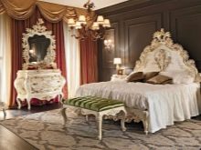 يجب إيلاء اهتمام وثيق لاختيار مجموعة غرف النوم ، والتي يجب أن تكون بألوان فاتحة.. السمة المميزة لأي أثاث مستخدم في هذه الغرفة هو وجود عناصر منحوتة. يؤكدون على التكلفة العالية والهيبة لكل قطعة أثاث..