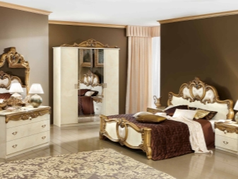 يعتمد الكثير أيضًا على اختيار الخزانة. بالطبع ، بالنسبة للواقع الحديث ، تكون خزانة الملابس أكثر ملاءمة وفسيحًا ، ومع ذلك ، فإن مثل هذا التصميم لن يتناسب بالتأكيد مع الطراز الباروكي ، لذلك من الأفضل اختيار الموديلات ذات الأبواب المتأرجحة. يصر معظم المصممين على أن جميع الأثاث يجب أن يتميز بأرجل منحنية ومقابض مذهبة..