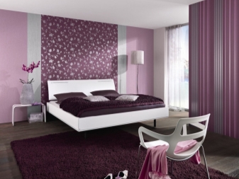 خطوة أخرى بسيطة إلى حد ما هي الجمع بين ورق جدران أرجواني عادي مع إدخالات الأزهار. يمكن أن تكون الستائر وأغطية الأسرة لهجات لطيفة. مثل هذه التفاصيل ستجعل غرفتك تنبض بالحياة بالتأكيد..