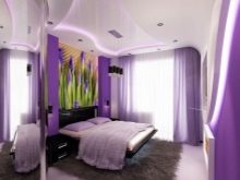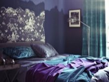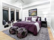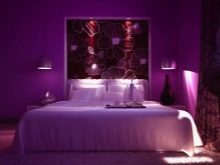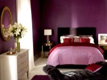 يتم استخدام اللون الأرجواني الداكن في كثير من الأحيان في تصميم غرفة النوم ، ولكن لا ينبغي إغفاله. إذا كانت الغرفة صغيرة جدًا ، فإن الظلال الداكنة ستجعل الغرفة صغيرة جدًا.. لذلك ، يجدر استخدام نغمات أرجوانية غنية فقط في الغرف الفسيحة ، حيث ستكون حركة التصميم هذه مناسبة..