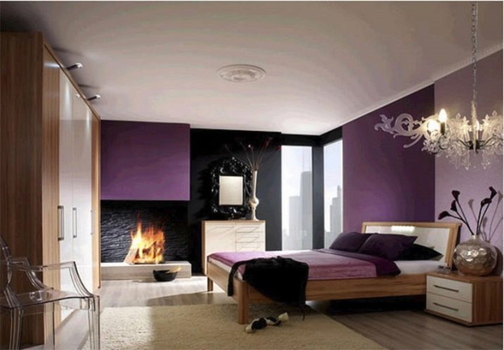 تعد غرفة النوم السوداء والأرجوانية خيارًا آخر يربح فيه الجميع. اختر أي ظل من اللون الأرجواني واجمعه مع ظل غامق. سيبدو جيدًا بنفس القدر في كل من التصميمات الداخلية الكلاسيكية والحديثة. إذا بدت الغرفة مظلمة جدًا بالنسبة لك ، أضف بعض الضوء إليها. أسهل طريقة هي عمل إضاءة ناعمة على الأسقف المعلقة. من الممكن جعل المساحة أفتح ليس فقط بمساعدة الإضاءة الاصطناعية. خيار جيد هو تعليق عدة مرايا في الغرفة أو ترتيب أجزاء زجاجية زخرفية..
