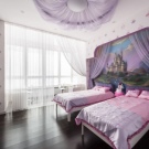 إذا كنت تحلم دائمًا بغرفة نوم أميرة حقيقية ، فيمكن تزيينها بألوان أرجوانية وردية. هذا أكثر إثارة للاهتمام من استخدام اللون الوردي وحده. اجمع بين اللون الأرجواني الفاتح والوردي الباهت ، وقم بتعليق الستائر الشفافة الرشيقة على النوافذ. إذا أمكن ، يمكن تركيب سرير مغطى ذو أربعة أعمدة في وسط الغرفة. هذا سيجعل الغرفة ملكية حقًا..
