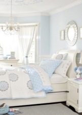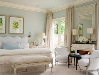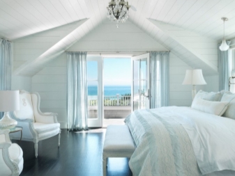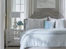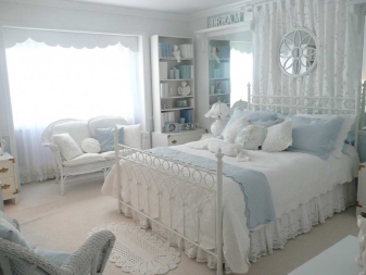 في هذه الحالة ، من الأفضل تعليق فتح النافذة بستائر ساتان ، فضية لامعة وتول رقيق متجدد الهواء. ستبدو المناظر الطبيعية الشتوية الساطعة مثالية على الحائط ، وسيكون أفضل مصباح هو ثريا من الكريستال وقلادات وامضة. كل هذه التفاصيل قادرة على إضفاء إحساس بالخفة والنظافة والنضارة على غرفة النوم..