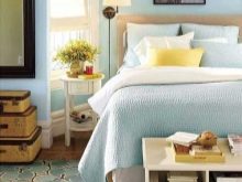 عندما تكون الخلفية الرئيسية للغرفة باللون الأزرق السماوي ، يجب أن تكون أثاث الشقق في لوحة ألوان أكثر دفئًا وعصارة. سيتم دمج غرفة النوم ذات الألوان الزرقاء بشكل مثالي مع الخشب الطبيعي بظلال الكريم والبيج. إنها قادرة على تنعيم جميع الأسطح الباردة وجعل الغرفة أكثر راحة..