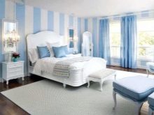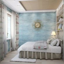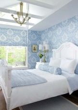 غرفة النوم باللونين الأزرق والأبيض هي الحل الأكثر شعبية والفوز بالجانبين. هذه الغرفة دائمًا ما تكون جديدة وأنيقة ؛ في تصميمها ، كقاعدة عامة ، يستخدمون تقنية الخطوط البيضاء على الجدران. إذا رغبت في ذلك ، يمكن تخفيف المفروشات بدهانات المرجان (يمكن أن تكون وسائد أو أغطية سرير).