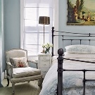 يمكن إغلاق النوافذ بستائر خزامية ، ويمكن تعليق لوحة كبيرة ذات طابع زهري على الرأس..