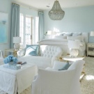 يمكن أن تخلق درجات اللون الأزرق جوًا جديدًا ونظيفًا في الغرفة. إن استخدام الظلال الفيروزية في الداخل واللوحات البحرية والزهرية دائمًا ما يمنح الأناقة والحنان الداخليين. يبقى فقط عدم الخطأ في التقدير مع الاختيار الصحيح للدهانات للزينة ، والتي ستكون منسجمة مع جميع عناصر الديكور في الغرفة..