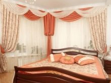 هذا هيكل معقد إلى حد ما.. يوجد طية كبيرة في وسط الستائر. وعلى الجوانب تتحول الستائر إلى أقواس. هذا الخيار عملي للغاية. إذا احتاجت غرفة النوم إلى مزيد من الإضاءة ، فستقوم آلية خاصة برفع الستائر. إذا اقترب وقت النوم ، فيمكنك بسهولة خفض القماش وإصلاحه.