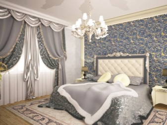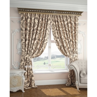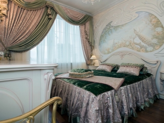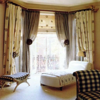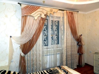 علاوة على ذلك ، يمكن ربط الستائر أسفلها وفوقها. يمكن أن تبدو مشوشة للغاية بسبب الأقمشة ذات الطبقات والستائر غير المتكافئة.. التباين في الحديث غير مقبول. لذلك ، يتم الجمع بين الألوان بشكل متناغم. يمكن أن تكون مشرقة ومظلمة. تبدو الزخرفة على المواد المنسوجة باهظة الثمن وجذابة. أنسب الأقمشة هي المخمل والساتان.