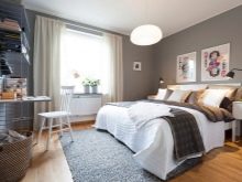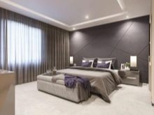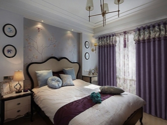عادة ما تكون الألوان الباردة في غرفة النوم غير مرحب بها. لكن هذا العام ، في ذروة الشعبية ، كان اللون الرمادي والجوز والبني والأرجواني على وجه الخصوص. تتراوح درجات اللون البنفسجي من شاحب إلى فاتح. غرفة النوم محاطة بستائر بألوان ناعمة: بنفسجي ولافندر.