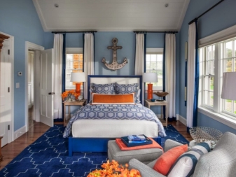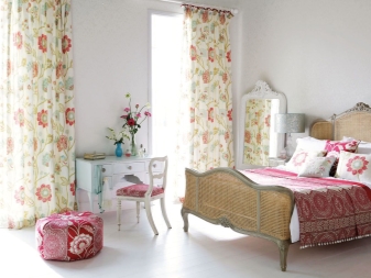 يمكن أن تضيف الظلال الساطعة عنصرًا من المرح إلى جو غرفة النوم الهادئ.. في هذا الصدد ، ذات الصلة انتقائية. تتفاعل هنا أزهار ضخمة أو خطوط عريضة غير واضحة وأشكال حجمية..