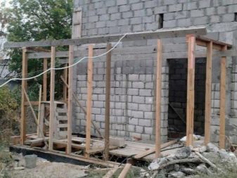 على أي حال ، يجب أن يبدأ البناء بإنشاء الأعمدة ، كما هو موضح أعلاه ، أو بلحام المنحدرات ، والتي يجب تثبيتها من الحافة الخارجية لمنصة الركيزة إلى جدار المنزل. علاوة على ذلك ، وبغض النظر عن طريقة الدعم التي يتم اختيارها ، فمن الضروري تثبيت عوارض الدعامة. على عكس الشرفة المبنية على أساس ، يتم هنا إحضار العوارض مباشرة إلى الغرفة نفسها ، مما يسمح بتثبيتها وتقويتها بشكل آمن.