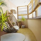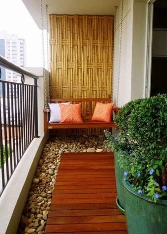 سيسمح لك كرسي الأرجوحة المريح ، جنبًا إلى جنب مع شجرة نخيل صغيرة وعناصر زخرفية مصنوعة بأسلوب شرقي ، بنسيان مصاعب يوم العمل بسرعة ويمنحك السلام والهدوء..