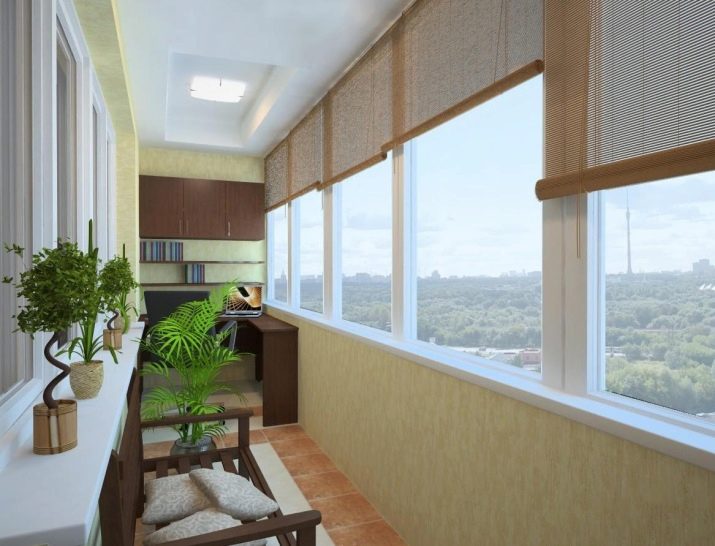 - إمكانية ترتيب الشرفة كما يحلو لك. يمكنك إنشاء ورشة عمل منها ، أو مكتب شخصي ، أو غرفة استراحة ، أو حتى تجهيزها مثل قبو.