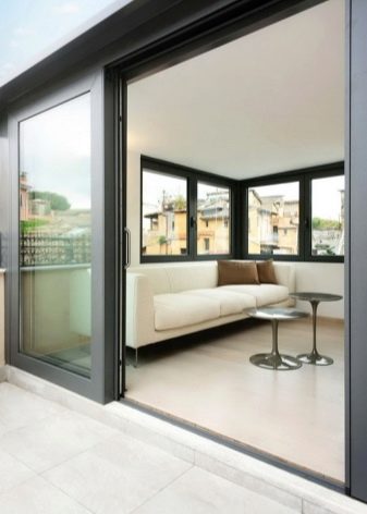 العيب الوحيد للأبواب المنزلقة هو أنه من أجل نقلها إلى الجوانب ، من الضروري توفير مساحة بالقرب من الجدران ، لذلك ، في بعض الحالات ، لتثبيت مثل هذا الهيكل ، عليك التخلي عن عتبات النوافذ. الجدران المجاورة مع النوافذ. ولكن من ناحية أخرى ، نظرًا لحقيقة أن هذه الأبواب لا تفتح على مصراعيها ، يمكنك عمليًا استخدام كل المساحة الموجودة أمام وخلف هذا الباب. هذه هي الميزة التي تحدد شعبيتها. أبواب الشرفة المنزلقة هي تصميم لا يمكن الاستغناء عنه لغرفة صغيرة بها لوجيا.