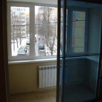 كقاعدة عامة ، يتم إدخال النوافذ ذات الزجاج المزدوج العادي في مثل هذا الهيكل. يجب أن يكون تركيب هذا النوع من الهياكل مصحوبًا دائمًا بالعزل المناسب للشرفة. خلاف ذلك ، فإنه ببساطة لن يتعامل مع الحماية من درجات الحرارة المنخفضة ، وسيكون الجو باردًا جدًا في الشقة. خيار بديل هو تثبيت أجهزة التدفئة على لوجيا إذا تم وضع هذا الباب.
