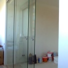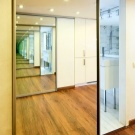 النوع الأكثر شيوعًا هو الباب المنزلق الذي يشبه تصميم خزانة الملابس. تتحرك هذه اللوحات معًا في اتجاهات مختلفة أو في اتجاه واحد ، وكذلك بشكل منفصل. يتحركون على بكرات على قضبان خاصة موازية لبعضهم البعض. هذا التصميم هادئ للغاية ، تتحرك الأبواب برفق شديد وبصمت تقريبًا. إنها خفيفة الوزن للغاية ، وفي نفس الوقت تكون ملائمة للاستخدام ، ولكن كقاعدة عامة ، بسبب هذا التصميم ، لا يقوم المصنعون بتزيينها بشكل مثير للاهتمام..