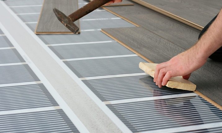 - يمكن أن يكون تركيب أرضيات الفيلم رطبًا وجافًا. مزايا التسخين بالأشعة تحت الحمراء في إمكانية استخدام كل من السجاد والرقائق.