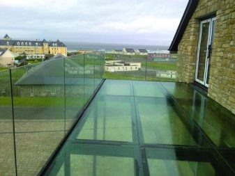 في الآونة الأخيرة ، اكتسبت الأرضية الزجاجية بالكامل شعبية. الغطاء مصنوع من زجاج مقاوم للصدمات. يتكون الهيكل من 3 طبقات ، يبلغ سمك كل منها حوالي 8 مم ، وهي متصلة إما بقاعدة لاصقة أو عن طريق التأثير الحراري.